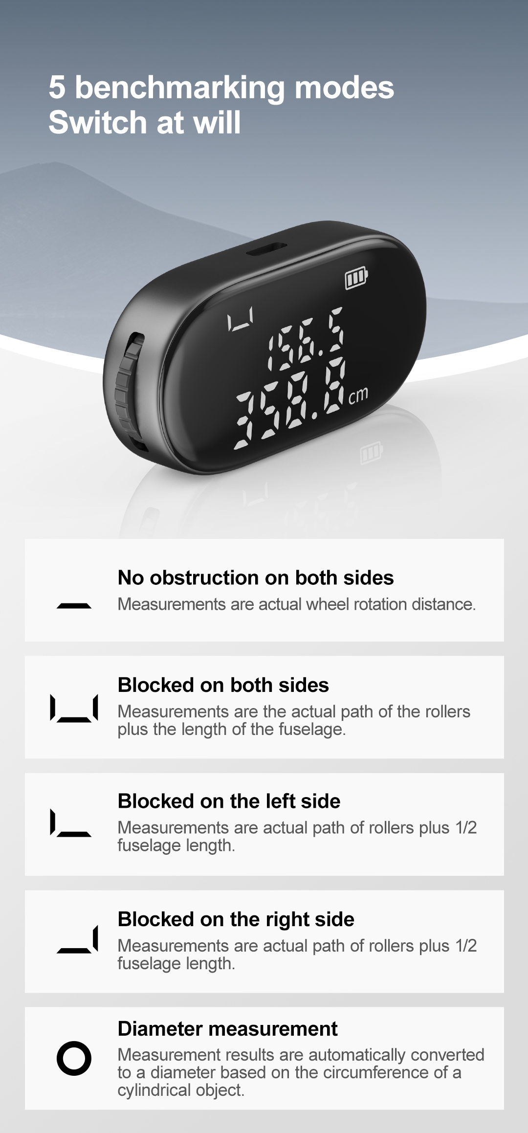 Unlike other traditional rulers, Q2 adopts the rolling measurement method, the bottom joined the wheel design, when measuring, just roll the wheel to quickly measure, real-time data display, that is measured, easy to operate, the longest cumulative measurement of 99.9m meters, the error can be done to ± 0.5%, accurate and convenient, enough for daily measurement.