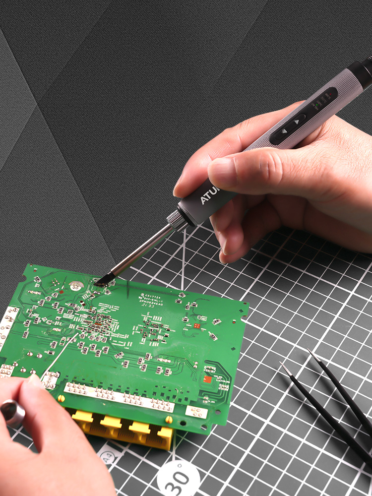 In addition to the traditional hot wire soldering iron with wet sponge cooling, turn the screws to fix the head of the soldering iron, by extending and shortening the contact volume of the head of the soldering iron and the heating core can be adjusted to the speed of warming up, which requires a certain degree of technology. And many electronic parts have the upper limit of temperature requirements, in order to prevent the temperature is too high to burn parts and PCB board, this temperature-controlled soldering iron has a temperature sensing function, in the speed of warming and temperature control ability than the traditional temperature-controlled soldering station is more excellent.
