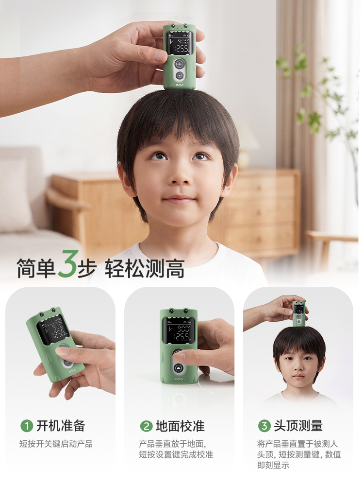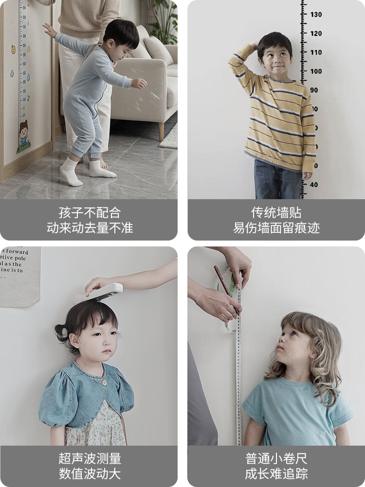 家有娃的家长,一定都懂量身高的痛:贴身高墙贴,撕下来留胶印、墙面脏兮兮;用软卷尺拉,孩子动一下数值就飘,测三次三个数;传统超声波、红外测量,受环境干扰大,数据不稳还不准;想记录成长曲线,翻本子、记手机,零散混乱,根本追不上孩子蹿个的速度……