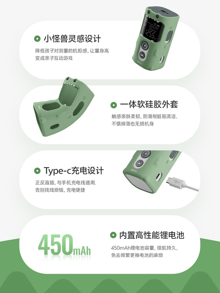 这个身高管理小萌兽,小巧圆润,萌系小怪兽外观,清新舒适配色,没有尖锐边角,孩子超喜欢。